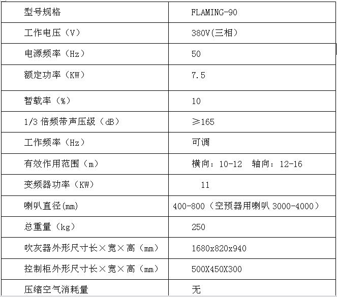 FLAMING-90型調(diào)頻式電動聲波吹灰器主要由發(fā)聲系統(tǒng)和自動控制系統(tǒng)兩大部分組成。發(fā)聲系統(tǒng)主要由電動機(jī)、聲波共振腔、放大喇叭等組成。自動控制系統(tǒng)由電器柜、變頻器或組態(tài)好的DCS組成。