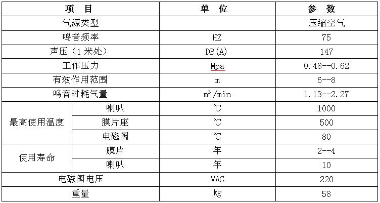 器技術(shù)參數(shù):