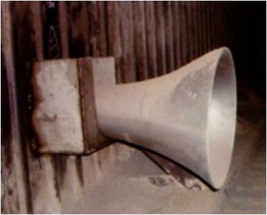 WHSS-150型共振腔式聲波吹灰器的發(fā)聲原理,是將一定壓力的氣源(壓縮空氣或蒸汽)輸入吹灰器特制氣室,使氣源在特定的幾何空腔內(nèi)產(chǎn)生振蕩,激發(fā)空腔內(nèi)氣體的強(qiáng)烈振蕩而發(fā)出高強(qiáng)度的聲波。其除灰機(jī)理是將高強(qiáng)度的聲波,送入運(yùn)行中的鍋爐爐體內(nèi)各種可能積灰結(jié)渣的空間區(qū)域,通過聲能量的作用,使這些區(qū)域中的空氣分子與粉塵顆粒產(chǎn)生振蕩,破壞和阻止粉塵粒子在熱交換表面或粒子之間的結(jié)合,使之始終處于懸浮流化狀態(tài),以便煙氣或重力將其帶走。