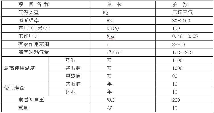 WHSS-150型共振腔式聲波吹灰器技術(shù)參數(shù):